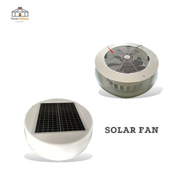 Solar Roof Ventilation Exhaust Fan - White 15W polycrystalline solar panels (354x354x4.5mm) IP68 Brushles DC Motor 14 inch blade (tuyere diameter 314 mm) Round fuselage, round base: 495x495mm, Added adapter, CE standard, including 3M wire.